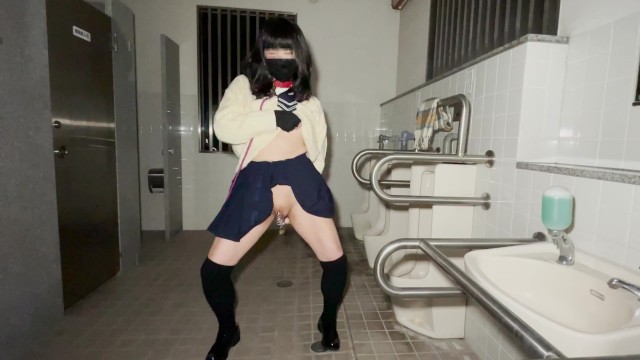 A High School Girl Wearing a Chastity Piercing Masturbates Anally in a Men's Public Restroom. advanced search: