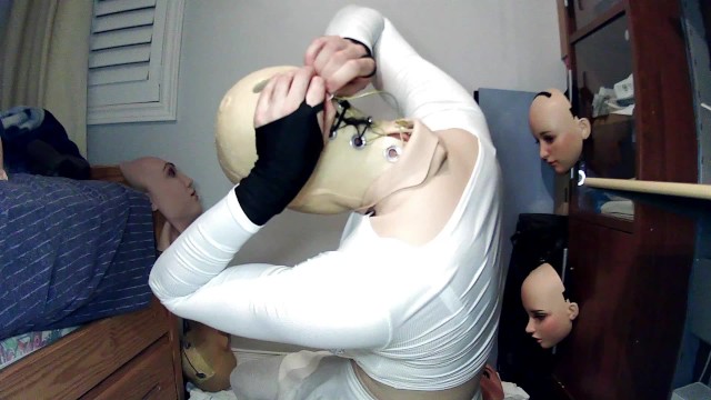 Anime girl happi pt 4! female mask happi girl tries to unmask from her tight female mask? a lock?!! - xCavy