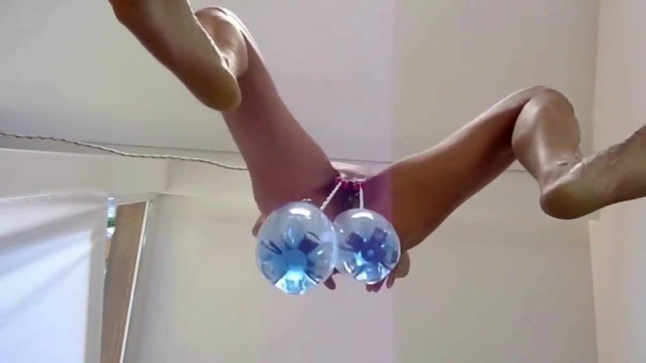 Bound and hung by her tits.