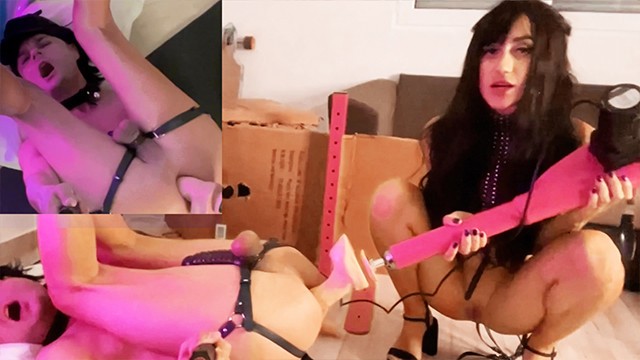 Female domination over moaning femboy, big dildo in opening gape asshole, fast sex machine, bdsm - xCavy